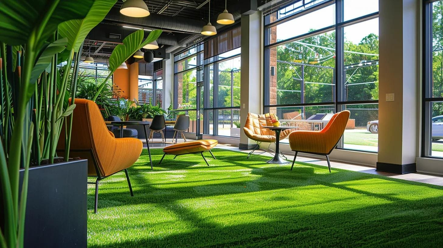 Biophilic Public Spaces: Our public green space turf transforms cold, hard surfaces into soft, welcoming leisure zones. It encourages people to linger and relax in shopping centers, airport lounges, and corporate breakrooms.